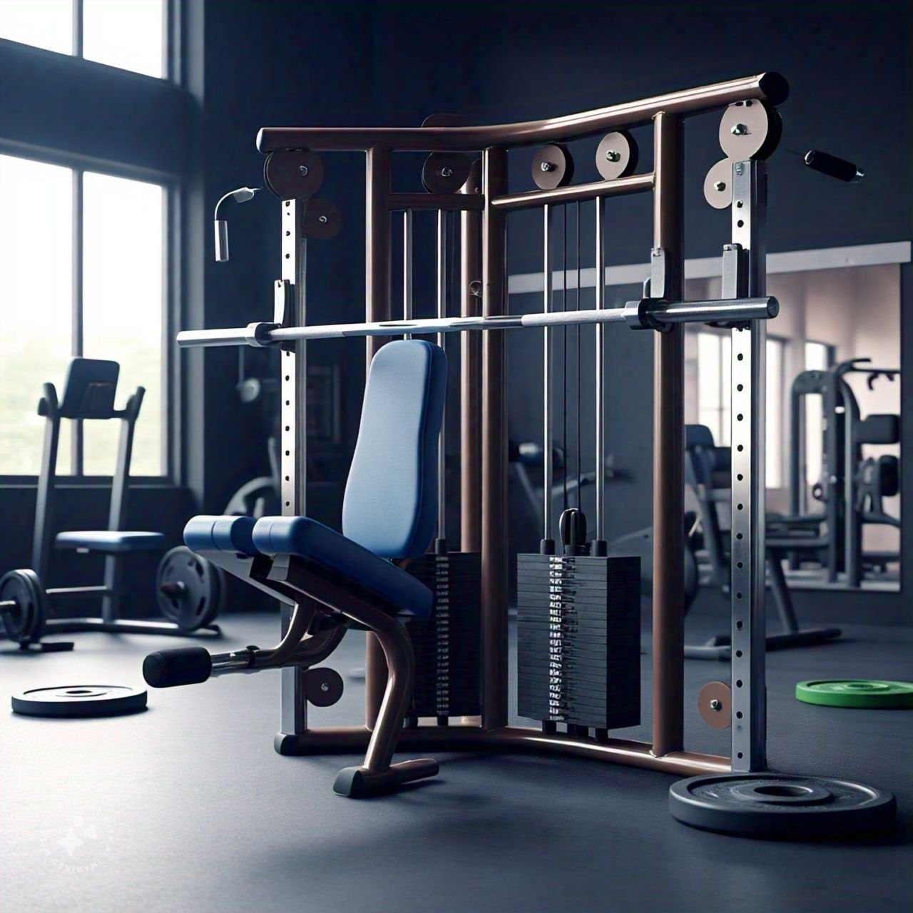 2. Instalação de máquinas de treinamento (polia, extensor, abdominal).